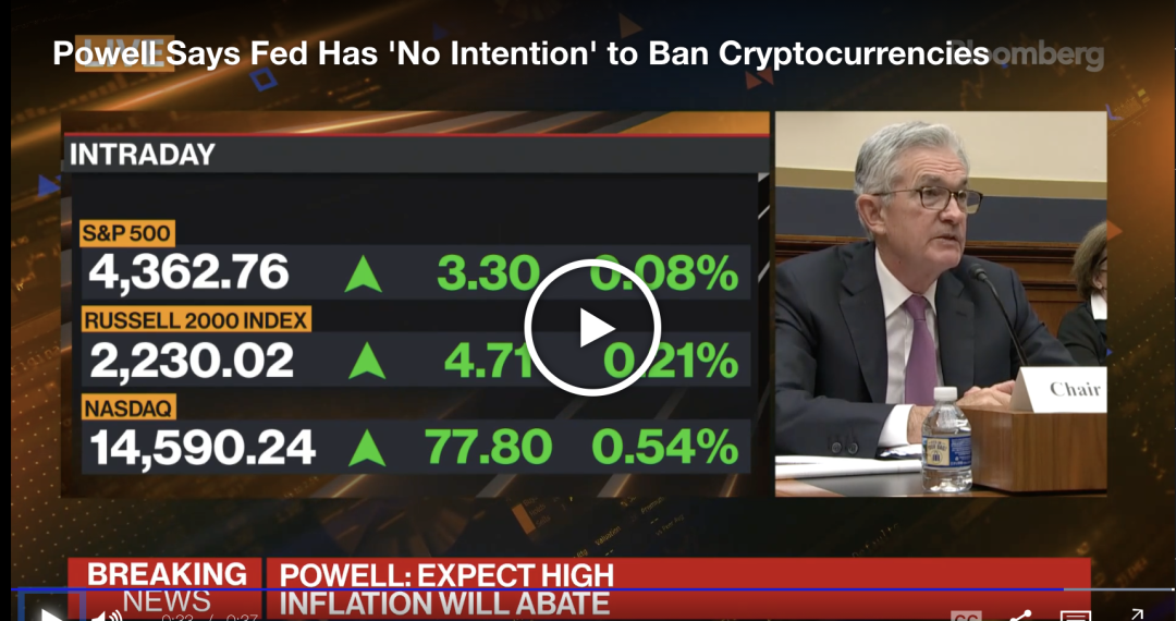 美联储主席鲍威尔在众议院金融服务委员会周四举行的听证会上明确表示,没有计划禁止加密货币。