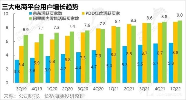 2022 年初起,无论根据市场调研还是海豚君的自身体验,都能感受到拼多多重新加大了推广力度。或许因此,本季度拼多多的用户量也重回增长。本季公司年活跃买家数环比净增了 1300 万人,作为参考京东本季环比新增了 1000 万。