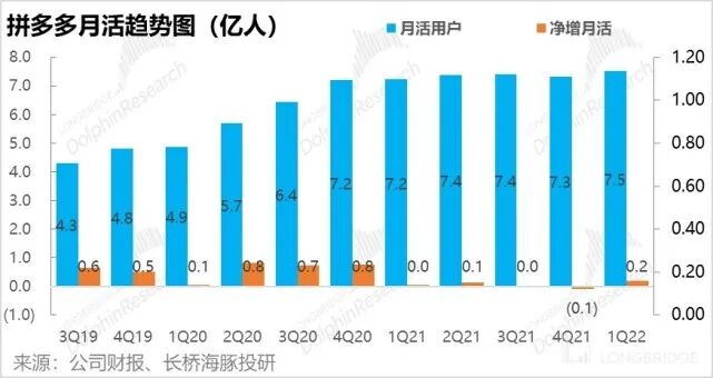同时,拼多多 app 的月活用户相较去年四季度环比净增了 1800 万人,达到约 7.5 亿人,再创历史新高。
