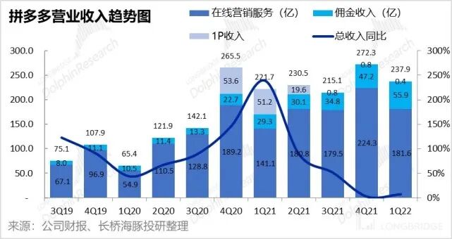 由于 1P 自营业务归零,收入同比减少 51 亿元的影响,本季拼多多的总收入同比增速仅为 7%,但市场本就将 1P 业务视为无关紧要的 “鸡肋”,仅关注上述的 3P 业务即可。