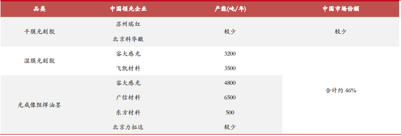 ▲中国 PCB 光刻胶主要生产企业(2020 年)