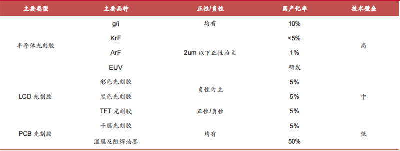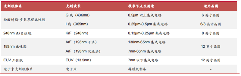 ▲半导体光刻胶的分类及应用场景