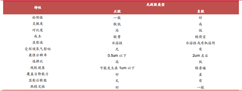▲正性、负性光刻胶拥有不同特点,适用于不同工艺