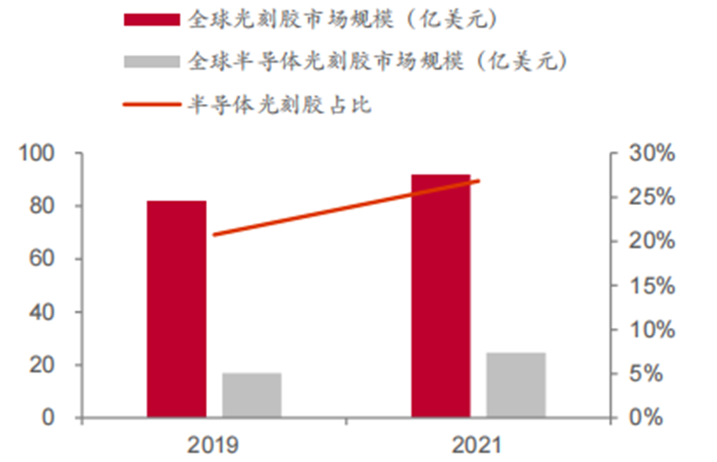 ▲19-21 年半导体光刻胶占比不断提升