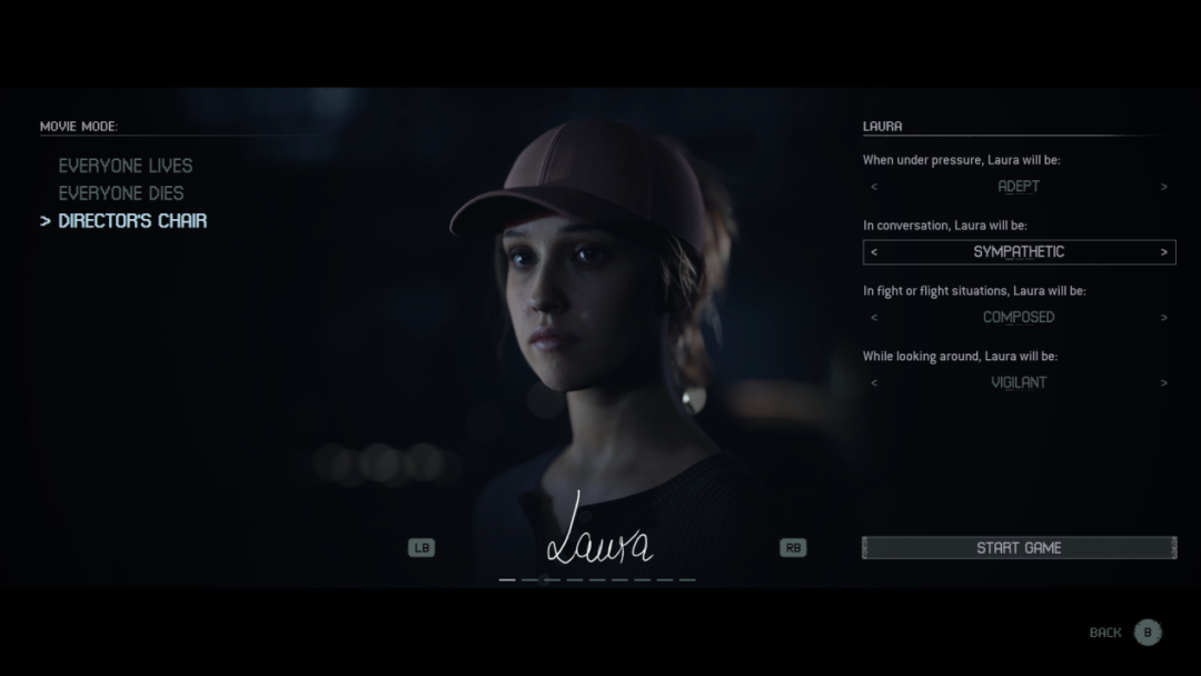 如果这样你还觉得麻烦,游戏在实际发售后,还将更新完全不需要玩家进行任何操作的“电影模式”。在该模式下,你只要预设好不同角色在特定情况下的反应策略,然后就可以直接放下手柄专注看剧情了——这种体验,就好像你真的在影院里观看一部恐怖电影一样。