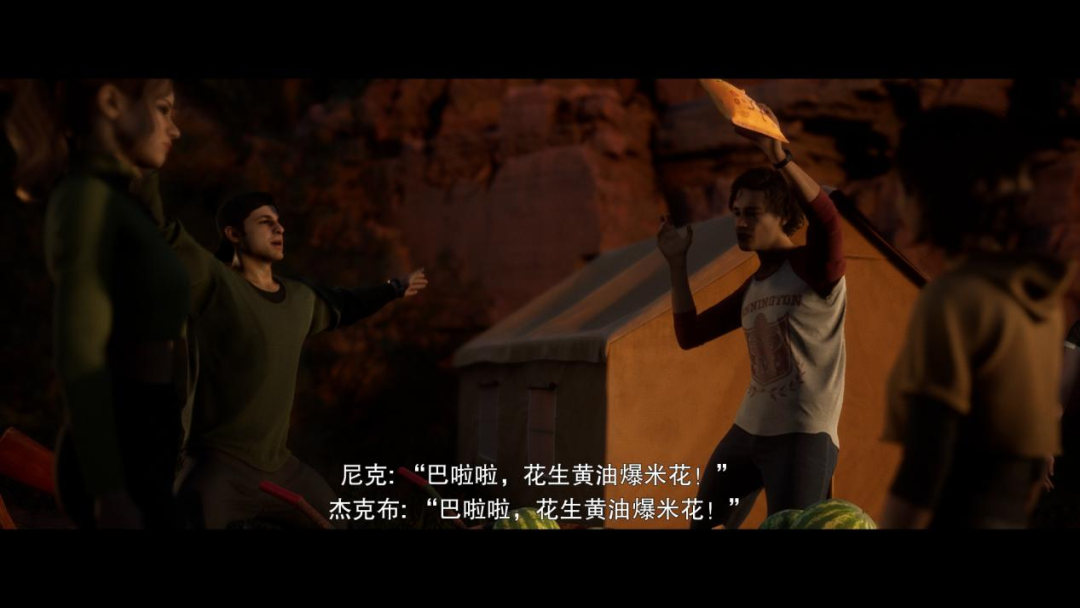 从故事结构上来说,这一段是整个《采石场惊魂》剧情中,承上启下的部分,故事由此开始从青春片逐步向恐怖片过渡。以第三章标题处为分隔,玩家们在这之前,看到的是七位主角在为营地最后一晚的篝火派对,做着各种准备工作,而这之后,则是突如其来的,紧张的逃脱剧情。