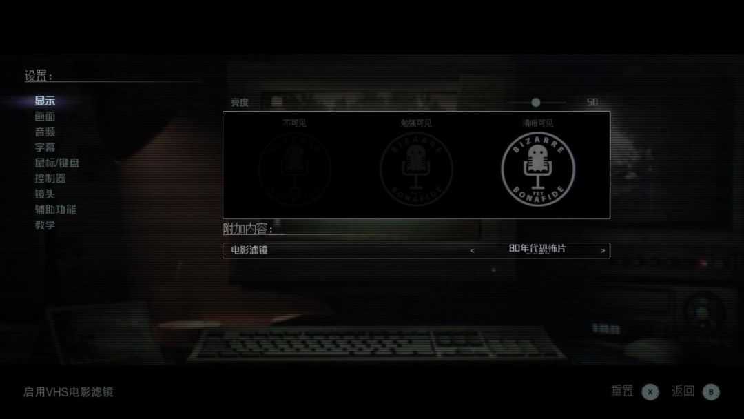 值得一提的是,在本次试玩版中,玩家还可以自由更换游戏的画面滤镜。其中包括最具代表性的,美国80年代恐怖电影的录像带胶片颗粒画风,以及更早之前,黑白电视时代恐怖电影的黑白画面。对于喜欢经典恐怖电影的玩家来说,这也会是本作一个值得体验的功能。