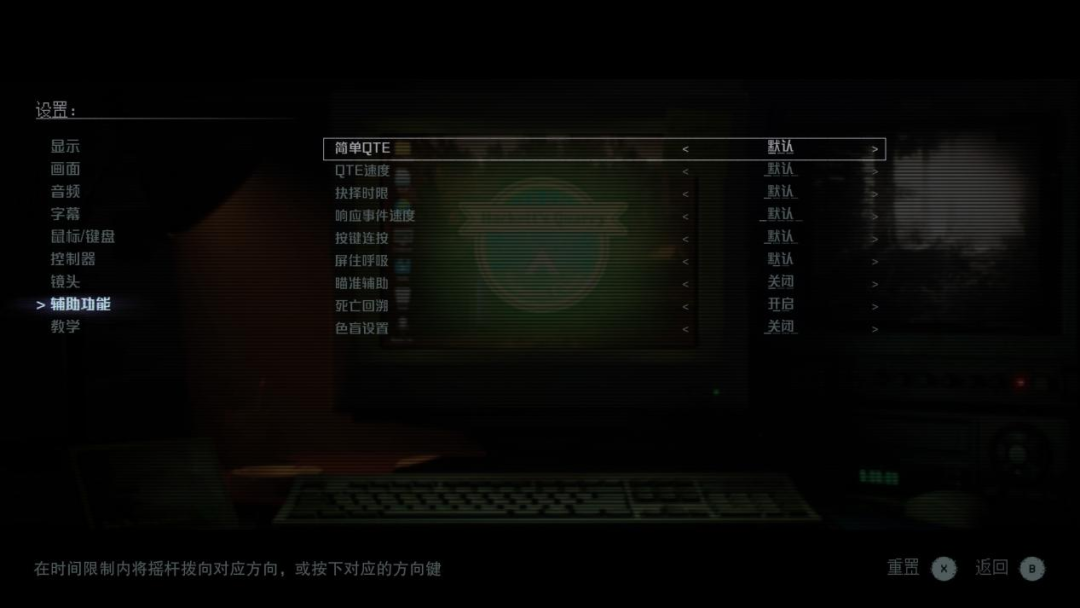 比如在试玩过程中,我就开启了简单QTE的功能,此时游戏中出现的所有QTE操作,都只需要使用手柄的左摇杆和一个功能按键就能完成,加上其他按键辅助功能,我全程都没有出现过因为专注于看剧情,而错过QTE操作的情况。