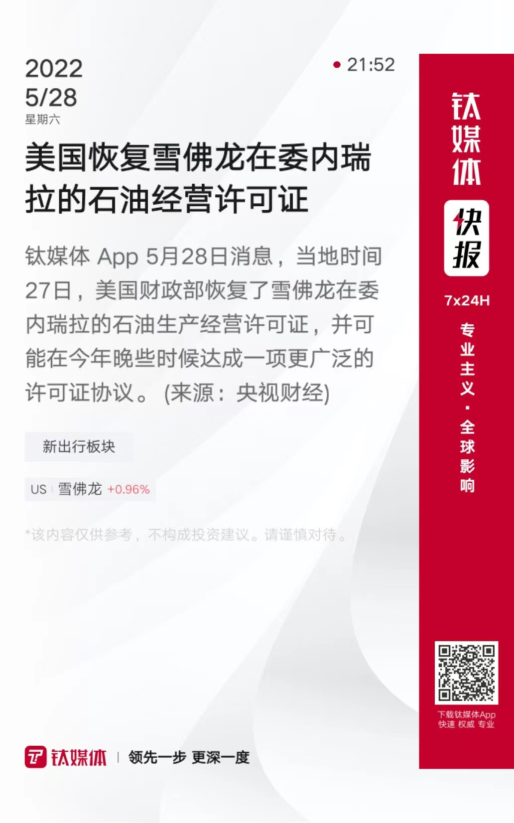 美国恢复雪佛龙在委内瑞拉的石油经营许可证