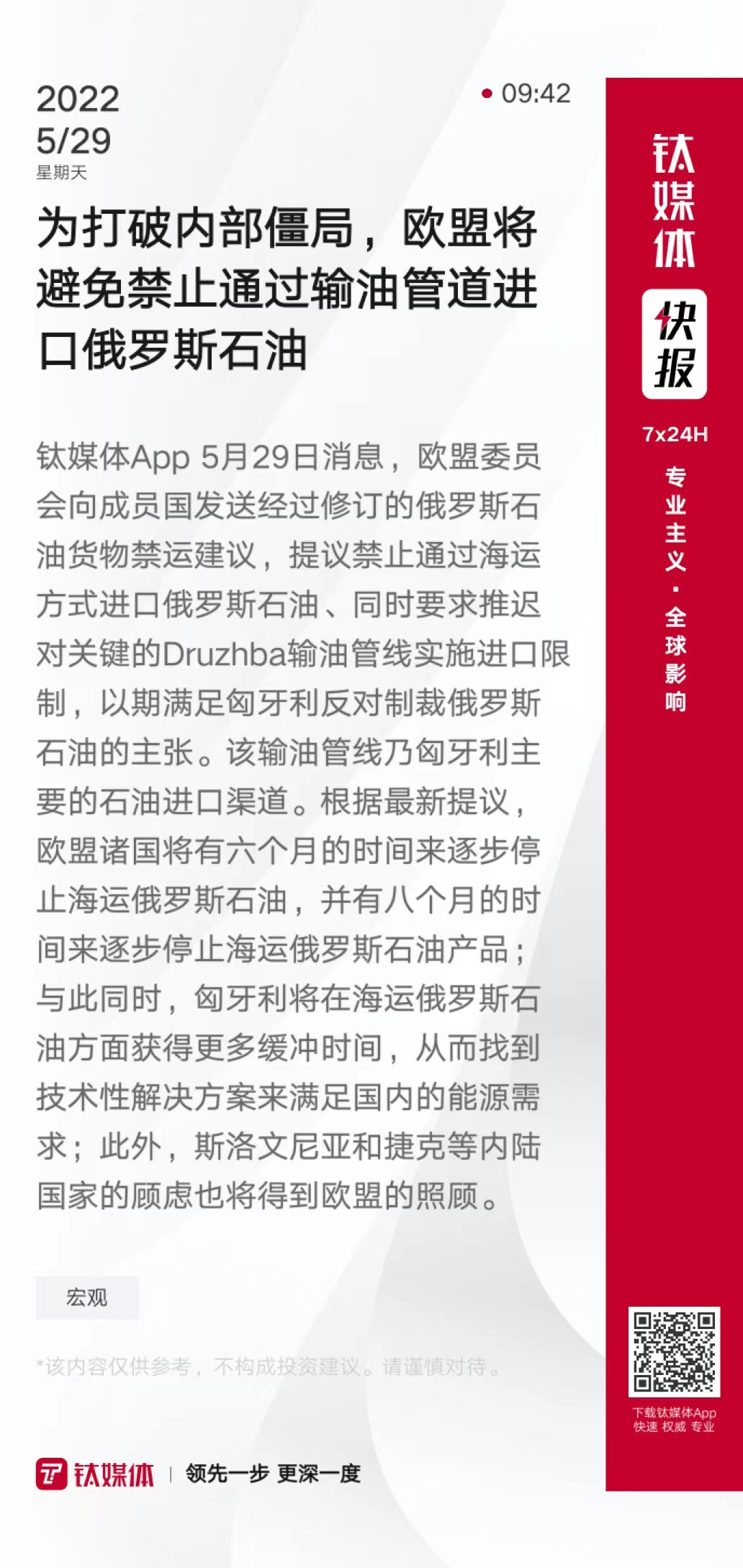 为打破内部僵局,欧盟将避免禁止通过输油管道进口俄罗斯石油