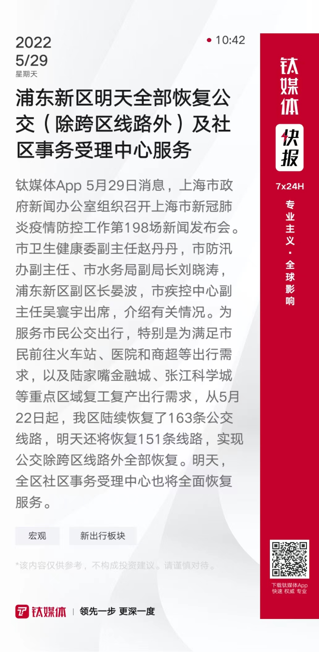 浦东新区明天全部恢复公交(除跨区线路外)及社区事务受理中心服务
