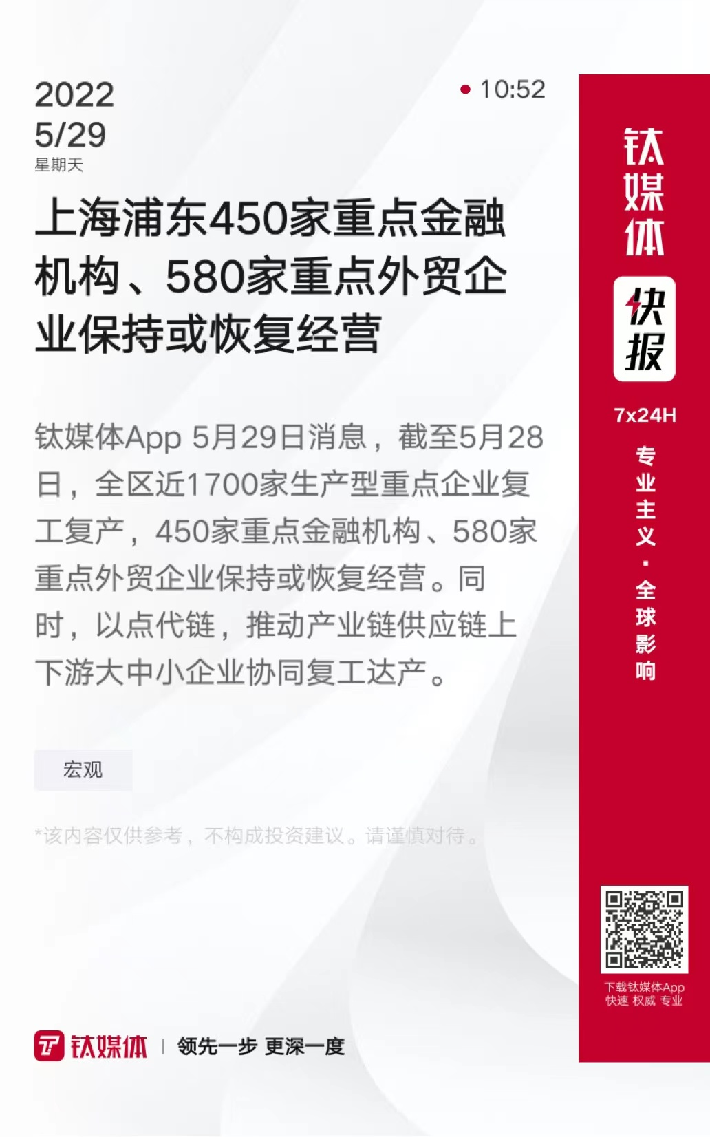 上海浦东450家重点金融机构、580家重点外贸企业保持或恢复经营