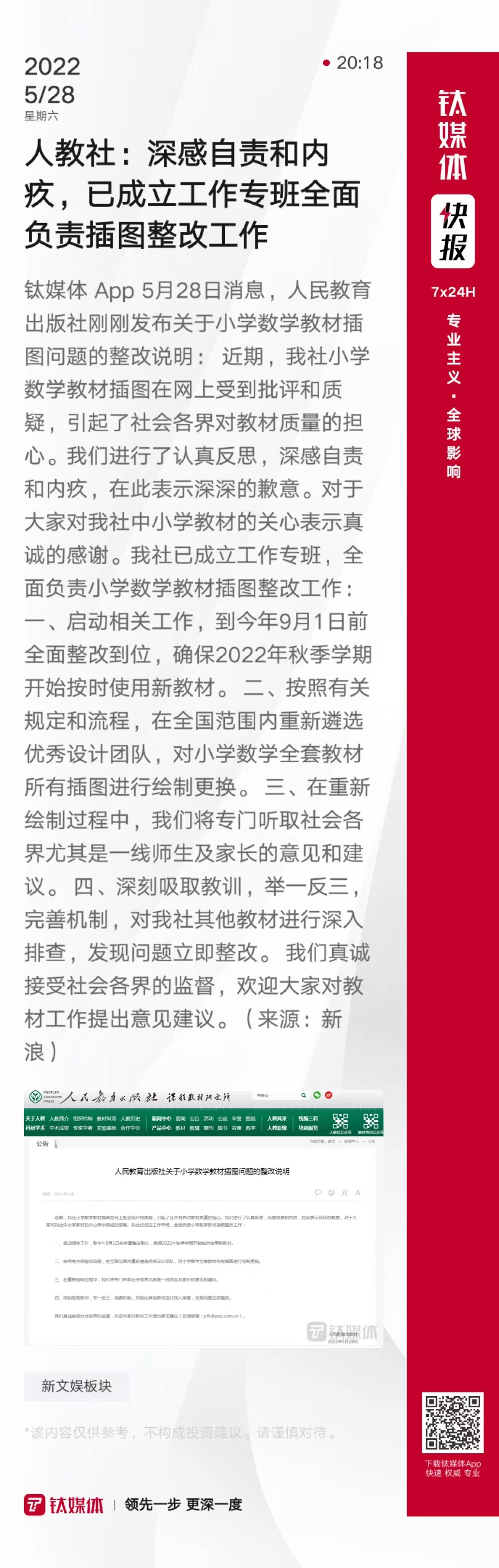 人教社:深感自责和内疚,已成立工作专班全面负责插图整改工作