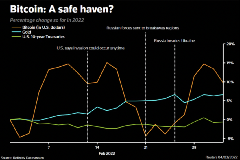 今年2月下旬,俄乌争端爆发。当美国总统乔·拜登表示,俄罗斯已决定入侵乌克兰,军事打击可能在几天内发生。比特币随后出现断崖式下跌。然而,随着俄乌冲突发生,比特币从开始从谷底反弹。部分分析师将原因归为投资者买入下跌,以及俄罗斯和乌克兰人民兑换比特币以保护财富。资料来源:Refinitiv Datastream乌克兰数字化转型部副部长Alex Bornyakov赞扬了加密货币在帮助乌克兰方面所发挥的作用。他认为传统的银行系统太慢,无法为军事和人道主义援助提供所需的资金,并强调了加密货币在特殊时刻快速反应的重要性。乌克兰政府官方Twitter账号发布消息接受加密货币捐赠,不到两周,收到的加密货币捐赠已经超过1亿美元,其中乌克兰政府官方地址累计收到约4855万美元的加密货币。在官方加密货币捐赠网站“Aid For Ukraine”中,此前已经筹集了超过5000万美元的资金。政策上,乌克兰总统泽连斯基于3月16日正式签署《乌克兰虚拟资产法》,将比特币等加密货币合法化,明确了外国和乌克兰的加密货币交易所将合法运营,银行也将为加密公司开设账户。此次冲突下,俄罗斯面临来自美国、欧盟、英国、加拿大的制裁,其中包括承诺将选定的俄罗斯银行从SWIFT系统中移出,这相当于直接切断了俄罗斯的跨境资金网络。虽然俄罗斯声称其央行研发SWIFT的替代系统SPFS,但这仍然不能够改变俄罗斯在国际支付转账上受到极大牵制的局面。而通过加密货币,俄罗斯能够显著提高其抵抗制裁的能力。公开数据显示,俄罗斯是全球第三大比特币挖矿国,占全球加密市场的份额约为12%。俄罗斯政府的一份报告估计,有超过1200万个由俄罗斯公民开设的加密货币钱包,涉及资金总额约2万亿卢布。这意味着加密货币在俄罗斯金融体系中占有着显著的比例。美国反洗钱合规专家德尔斯顿(Ross S. Delston)表示,“如果俄罗斯人决定不再使用除加密货币以外的任何货币,他们可以有效地避免几乎所有的制裁。”俄罗斯国会议员兼加密立法监管工作组成员Alexander Yakubovsky也表示,加密的“合法化”可以帮助俄罗斯与西方主导的经济制裁作斗争。此外,3月24日,俄罗斯杜马国家能源委员会主席帕维尔·扎瓦尔尼(Pavel Zavalny)表示,俄罗斯愿意接受比特币作为其自然资源出口的支付方式。这一方式试图找到打破美元封锁的出口。另一方面,美国及盟国也在阻止通过加密货币逃避制裁的行为。3月1日,美国财政部正式将加密资产规定纳入对俄制裁指南。新规包括禁止美国人向俄罗斯寡头和实体提供任何支持,包括通过使用数字货币或资产进行交易。同时,美国财政部要求币安、FTX和Coinbase屏蔽受制裁的人员和地址。防止俄罗斯利用加密货币逃脱制裁的“共识”下,G7国家表示正在研究阻止俄罗斯使用加密货币来逃避制裁的方法。欧盟提出,将就加密货币监管提供指导,以避免被用来规避制裁。日本政府和金融监管机构已下达政策,将对不遵守俄罗斯制裁规定的加密交易所进行处罚。3、稳定币UST的内爆