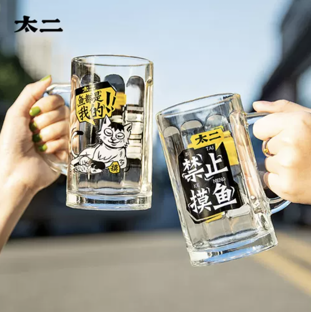 饭桶是个贬义词,用来形容某个人只会吃饭不会做事,听着就很侮辱人。「水桶」这个词就友好多了。最近争做「水桶」的爱范儿办公室就一致认为水桶很有用,因为水桶可以提醒你一直喝水,让你每天的饮水摄入量达到预期。为此一个办公室的人都拿起了近来大火的「吨吨壶」,它容量 1.5L 甚至更多,有事没事喝两口,一天饮用水的摄入量就达标了。不写不知道,一写发现爱范儿编辑部人均 3 个杯子。在爱范儿工作有什么好处?答案是杯子管够,保温杯也管够。每三个人的杯子中就有一个保温杯,这个杯子多用来喝热水,在冬天很实用,所以现在看很多都积灰了。这些也不是普通的保温杯,有的杯子上面印着 bilibili 小电视,是 B 站的杯子;有的杯子颜色跳脱,属于雷蛇炫酷的设计;还有的杯子智能温控,是需要充电使用的评测杯。而这些不同的设计落在杯子上,就成了日常使用的生活用品。保温杯和玻璃杯比起来耐摔、结实、使用寿命长,因此也变成了品牌制作衍生品的第一选择,放在礼盒里赠予客户很常见。但它成本也比玻璃杯更高,因此更少见品牌直接卖保温杯,品牌直接卖的更多的批量定制造价低,售价也不贵的玻璃杯、陶瓷杯。甚至这些杯子也被做成了一种商品或是吸引用户购买的赠品。办公室一位同事用的就是太二的玻璃杯,这是太二推出猫粮公益活动时他入手的杯子,主要是参与公益,杯子则是副赠品。还有一位同事用的是永璞咖啡的文创玻璃杯,买咖啡够一定量就送一个。办公室「撞杯」最多的是麦当劳的可口可乐杯子。麦当劳+可口可乐,两个词相加就让人感受到了满满的快乐,因此有不少可乐爱好者自掏腰包买杯子,爱范儿办公室就有三个人都有这个杯子。这也是我同事皮卡丘的最爱,也是他的主力喝水杯。这些是有品牌属性的,为品牌掏腰包买单,仅为设计付费的是我的同事志奇。他买了一个充满设计感的提醒喝水杯——透明瓶身上印着两个「喝水」的黑色大字,简单粗暴提醒你喝水。他也有一个天冷的时候用的保温杯和一个 1900ML 容量的「吨吨壶」,只是三个杯子也改变不了他还是不爱喝水的事实。基本只用一个杯子喝水的他,看着杯子上「喝水」提示已经麻木了,也完全不会因为这个杯子多喝一点水。但即便如此,他在家里还有更多的杯子。尽管喝水少,不妨碍买杯子多,毕竟杯子不贵又有趣。往杯子上印图、印字,让它更有趣、更值得纪念这件事情,爸爸妈妈那一辈就感受过了。单位比赛的奖品,逢年过节的礼品,一个印着图案的搪瓷杯也不算少见。只是当时的杯子更多是一种纪念,要让父辈出钱买,他们也大概率也会忍不住背后悄悄吐槽单位。现在不一样了,品牌可以把自己的吉祥物、品牌名字放在杯子上,经过一些设计包装还能让用户花钱买。三年前,星巴克发售了一款猫爪杯,杯子像猫爪伸进了杯子里留下了一个爪印,杯子上还印着星巴克的品牌名。就是这样一个杯子轻松引爆了全网猫奴的少女心,哪怕 199 一个的不低售价也没办法阻止杯子的迅速断货,引来黄牛疯狂抬价。这让人看到了杯子的吸引力,「卖杯公司」星巴克从某种程度上来说也成为了行业标杆,之后也有越来越多的品牌加入了卖杯子的行列。茶颜悦色就推出了多款搪瓷杯,不过售价比星巴克友好多了,做活动的时候一个猫爪杯 1/8 的价格就能买到。只是除了杯子,茶颜悦色别的衍生品也有不少,杯子虽多,也不是品牌衍生品的全部。喜茶做杯子就正经多了,也是目前最像星巴克的一个品牌。至少,148 的吸管杯售价就很逼近星巴克 199、159 的售价,价格很像。但即便价格不低,喜茶的杯子也卖得不错,多款售罄意味着用户已经接受了这些品牌所带来的溢价,并欣然为它买单。![]()