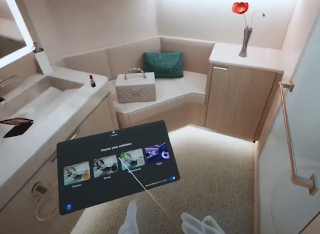 据悉,每架ACJ 2 20喷气式飞机都配备了预先设计的内饰。使用Quest 2 VR头显,客户可以在此初始设计的基础上进行构建,并使用Touch控制器配置内部布局,包括移动墙壁、添加桌子或创建完美靠窗座位的能力。