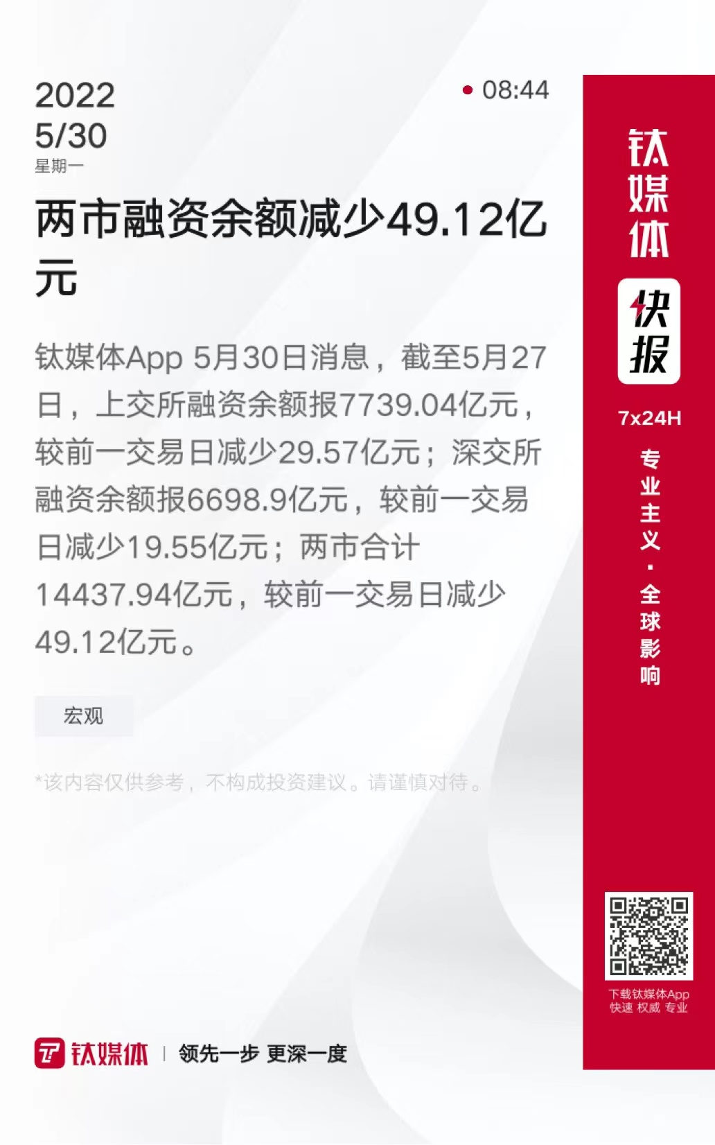 两市融资余额减少49.12亿元
