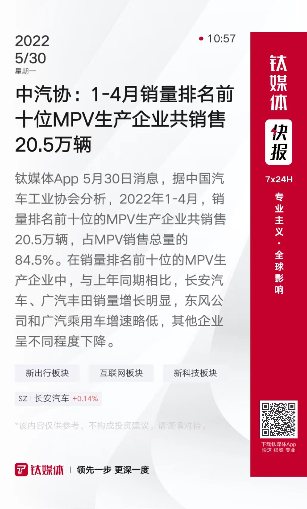 中汽协:1-4月销量排名前十位MPV生产企业共销售20.5万辆