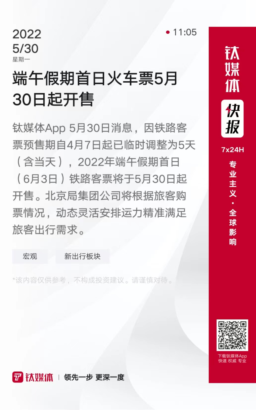 端午假期首日火车票5月30日起开售