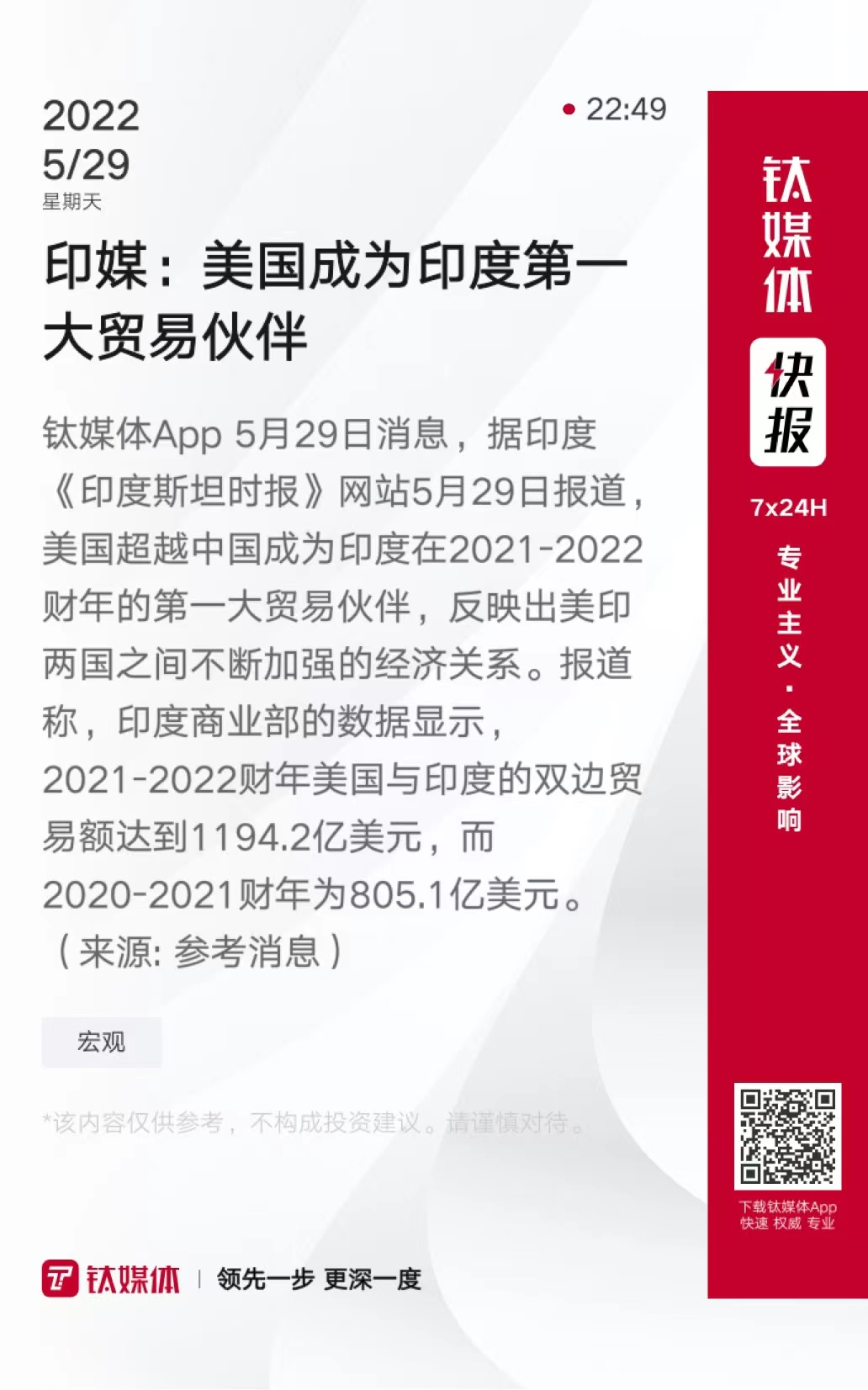 印媒:美国成为印度第一大贸易伙伴