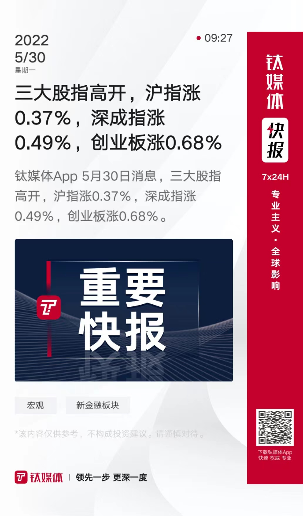 三大股指高开,沪指涨0.37%,深成指涨0.49%,创业板涨0.68%