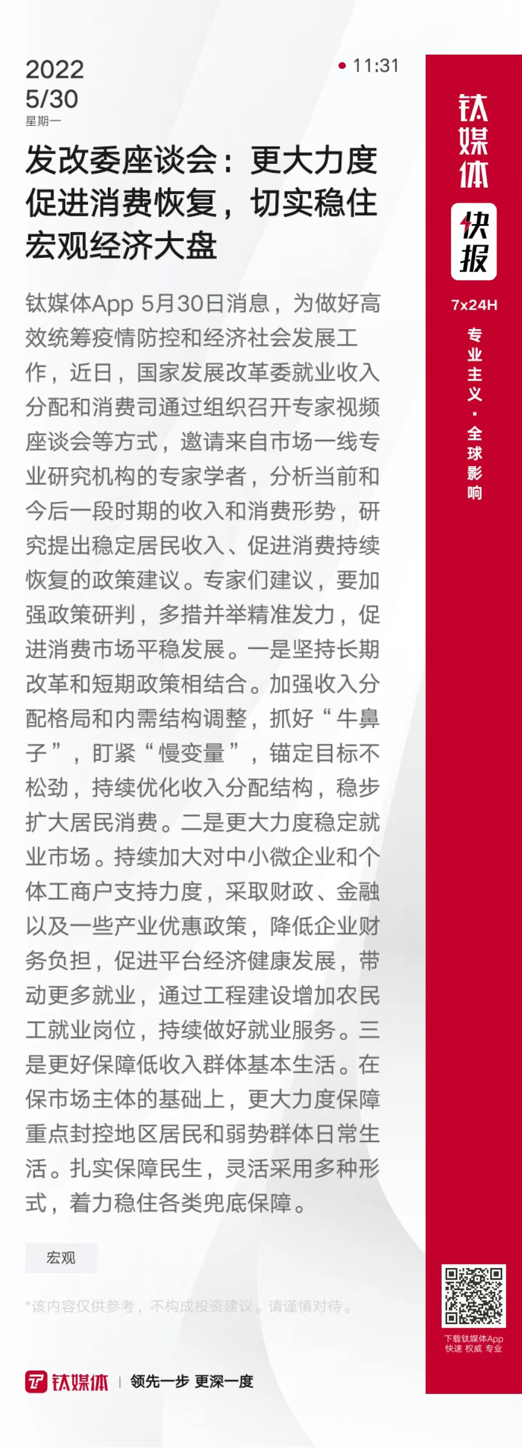 发改委座谈会:更大力度促进消费恢复,切实稳住宏观经济大盘