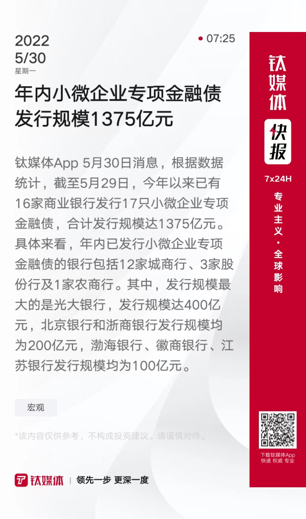 年内小微企业专项金融债发行规模1375亿元