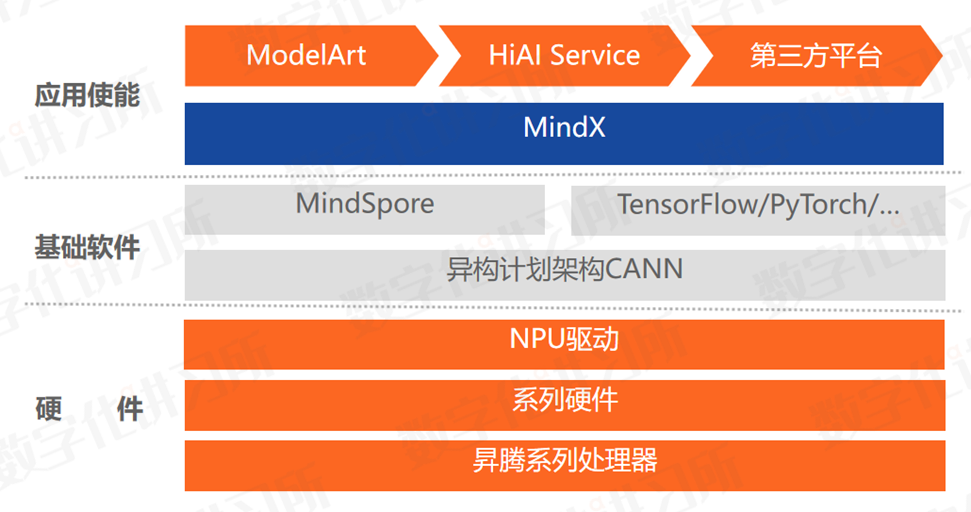 华为秉承“硬件开放、软件开源、使能伙伴、发展人才”的计算产业战略来打造鲲鹏生态。计算产业链是一个高度耦合的产业链,既需要有硬件,还需要有由操作系统、数据库、中间件、编成语言共同构成的基础软件。鲲鹏计算产业则是基于鲲鹏处理器的基础软硬件设施、行业应用及服务,涵盖从底层硬件、基础软件到上层行业应用的全产业链条。2019年的1月7日,华为自主研发的鲲鹏计算正式登场,此后由硬件开发策略出发,华为基于鲲鹏920处理器推出的Taishan服务器为鲲鹏计算生态打造了一个样板。12家整机厂商在随后的时间里基于鲲鹏主板推出了自有品牌的服务器和PC。为解决中国基础软件的细分产业在全球占比仅有5%的问题,openEuler操作系统、openGauss数据库陆续开源,发布鲲鹏应用使能套件Kunpeng BoostKit和鲲鹏开发套件Kunpeng DevKit,以“共享共建共治”为原则,持续投入开源社区建设,构建鲲鹏生态。目前,鲲鹏产业链上已有神州数码等12家合作伙伴发布鲲鹏整机,海量数据等12个合作伙伴发布openGauss商业发行版,麒麟软件等11个合作伙伴发布openEuler商业发行版。纵观鲲鹏计算产业生态全景,硬件方面,围绕鲲鹏处理器,涵盖包括昇腾AI芯片、智能网卡芯片、底板管理控制器(BMC)芯片、固态硬盘(SSD)、磁盘阵列卡(RAID卡)、主板等部件以及个人计算机、服务器、存储等整机产品。基础软件方面,涵盖操作系统、虚拟化软件、数据库、中间件、存储软件、大数据平台、数据保护和云服务等基础软件及平台软件。行业应用方面,鲲鹏计算产业生态覆盖政府、金融、电信、能源、大企业等各大行行业应用,提供全面、完整、一体化的信息化解决方案。鲲鹏计算产业生态至此已经成形,以此为基础,构建出基于鲲鹏的全栈IT基础设施、行业应用及服务,具体包括PC、服务器、存储设备、操作系统、中间件、虚拟化、数据库、云服务、行业应用等。民生证券预测,到2023年,鲲鹏计算产业市场规模近1900亿元,其中鲲鹏服务器市场500亿元,鲲鹏PC市场390亿元,其余计算产业配套软件和应用市场1000亿元。鲲鹏芯片作为国产化芯片中性能最为强劲的产品之一,依托华为技术底蕴及生态能力,有望搭建更完善的信创产业。伴随人工智能成为重要的国家战略,其产业热度也在持续升温。作为华为AI业务的重要战团,昇腾AI的发展备受关注。昇腾计算产业是基于昇腾系列处理器和基础软件构建的全栈 AI计算基础设施、行业应用及服务,包括昇腾系列处理器、系列硬件、CANN(Compute Architecture for Neural Networks,异构计算架构)、AI计算框架、应用使能、开发工具链、管理运维工具、行业应用及服务等全产业链。