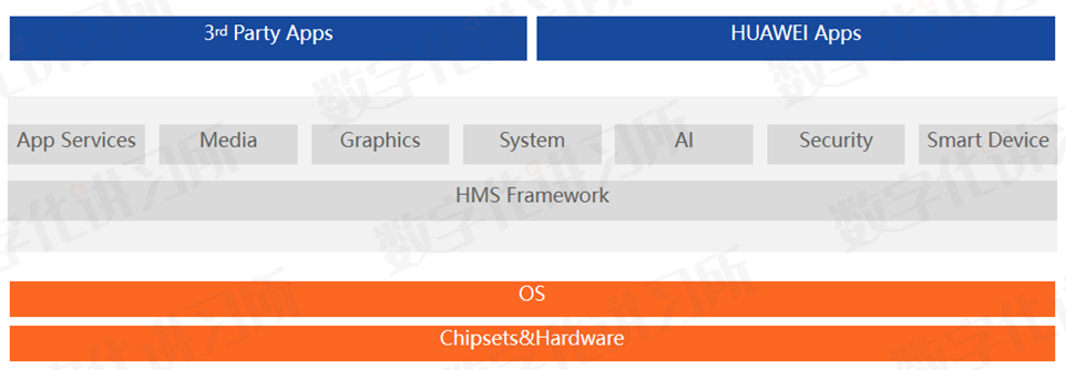 2021年5月,华为在Harmony OS Connect伙伴峰会上正式宣布了将“HUAWEI HiLink”与“Powered by Harmony OS”两大品牌全面升级为“Harmony OS Connect”。面向1+8+N生态伙伴硬件产品实现技术认证品牌归一,将HarmonyOS能力作为全场景智慧生态的底座,为消费者带来全新的跨端体验。目前鸿蒙生态73家合作伙伴中,华为官宣的“HarmonyOS”合作伙伴有 36 家,自主参与鸿蒙生态合作的上市公司有 22 家,华为现有自主生态阵营的关联合作伙伴还有 15 家。HarmonyOS主要领域在于物联网 IoT 等,或许能引导出全新的AIoT浪潮。作为华为主导自主研发的智能操作系统,华为鸿蒙系统(HarmonyOS)主要分为两部分:开源的OpenHarmony和华为独立拥有的HMS。虽然OpenHarmony是华为鸿蒙系统的主程序,但是对于HarmonyOS来说,承担应用生态功能的HMS却是最重要的,HMS Core是助力鸿蒙,走稳华为软件端信创关键一步。GMS是一个谷歌推出的软件框架服务。与安卓系统的概念不同,GMS更像是给安卓APP的一个底层服务,而谷歌家全系列的软件,全部都需要GMS的支持。在华为手机被禁用GMS后,华为推出比肩GMS的HMS Core生态。HMSCore是华为终端云服务(HUAWEI Mobile Services)开放能力合集,位于开发者应用与操作系统之间,是为应用开发提供基础服务的平台。同时,依托华为云服务,HMS Core也为这些服务提供云端能力,用于各服务的开通、业务实现及运营。HMSCore类似GMS一样提供服务的软件框架,为App提供帐号、定位、地图等服务,帮助开发者更高效地完成App开发。华为希望HMS Core对标GMSCore,提供更厉害的服务接口,吸引海外厂家将依赖GMS服务的APP移植到HMS上来,从而培养手机市场。对应用的用户来说,集成了HMS Core的应用能为用户提供多样化、多场景、多功能的更佳体验;对应用的开发者来说,HMS Core的通用开放能力能快速为开发者构建跨平台的差异化产品能力;对应用的运营人员来说,HMS Core能为运营人员提供针对各项服务的一站式多平台运营管理能力。HMSCore开放能力陆续支持“1+8+N”全场景设备,以安卓、iOS等平台手机为中心,向平板、智慧屏、手表、VR眼镜、车机、智能音箱、PC、耳机等领域发展。HMS Core的每个服务可单独为开发者提供独立且完善的产品能力,也可以多个同类服务相互组合形成领域,其中涉及图形、媒体、人工智能、应用服务、连接与通信等7大领域,为多个垂域提供行业解决方案,涵盖出行、电商、金融、游戏、影音娱乐、运用健康等行业。3.HMS快速发展成为全球第三大移动应用生态
