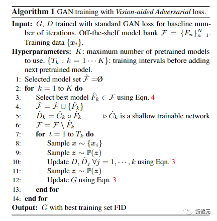 在K-progressive策略中,在训练了与可用的真实训练样本数量成比例的固定迭代次数后,把一个新的视觉辅助判别器被添加到前一阶段具有最佳训练集FID的快照中。