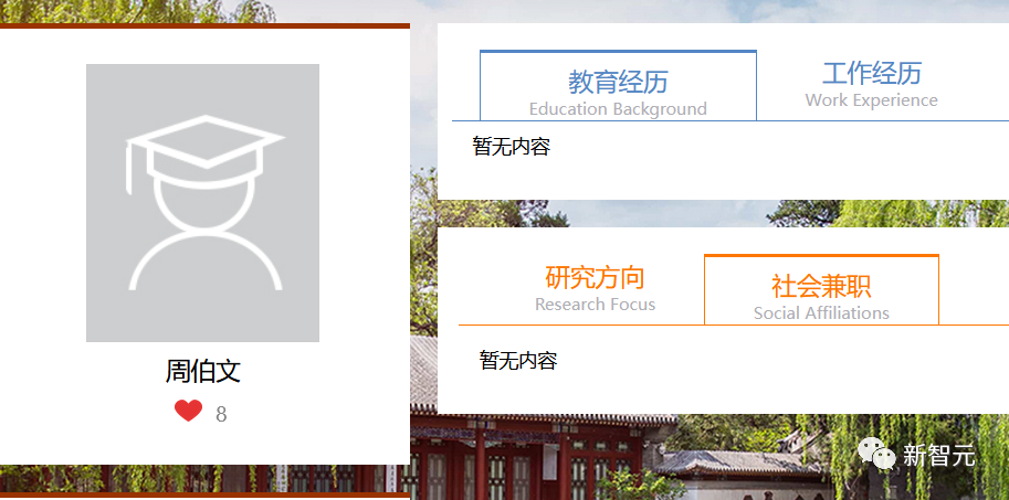 不过教师个人主页页面内容中,周教授的科学研究、教学研究、招生信息、教育经历、工作经历、研究方向、社会兼职等栏,均是空白。可能是还没敲定具体带哪门课、哪些学生或哪个项目。在清华大学电子工程系的官方微信公众号文章里,正为周教授的团队招人:「周伯文教授在清华大学的课题组已经面向全球人才启动教师、研究员(含副研、助理研究员)、博士后、工程师的招聘及博士、硕士研究生招生,并积极邀请有志于融合AI研究与产业应用的本科同学共同参与、因材施教。」周教授给的团队目标是「让我们的研究成果在学术上上书架,在产业上上货架」,很有壮志。