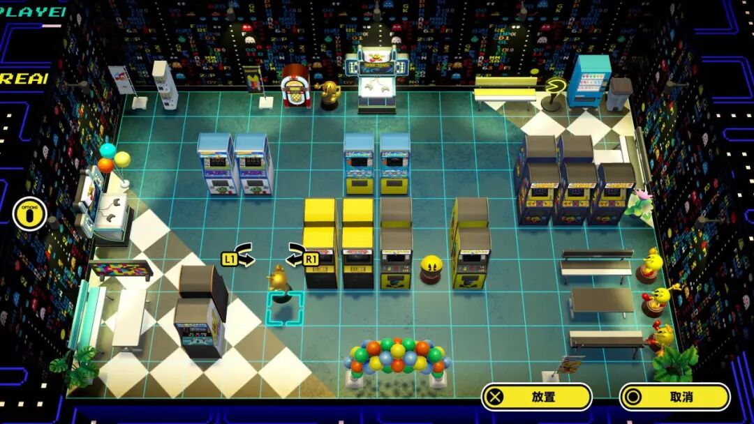 在这里,玩家除了可以操控从《吃豆人世界》之后,“有手有脚”形象的吃豆人在机台之间移动,选择想要体验的框体外,更可以按自己所想的方式,打扮这个游戏中心,从街机框体到墙纸地板,再到装饰霓虹灯和桌椅板凳。而如果完成各个机台预先设置好的挑战目标,便可以解锁更多样式的装饰家具。游戏玩累了之后,也可以在自己打造的机厅中闲逛上两圈,再用金币转上两次扭蛋。