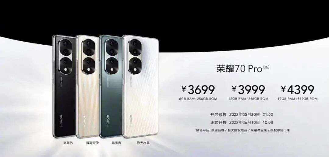 昨晚,荣耀召开新品发布会,正式发布了荣耀70系列。此次发布的荣耀70系列包括荣耀70、荣耀70 Pro、荣耀70 Pro+三款机型,分别搭载骁龙778G+、天玑8000、天玑9000处理器,并配有IMX800主摄镜头,支持100W快充等,售价分别为2699元起、3699元起、4299元起。