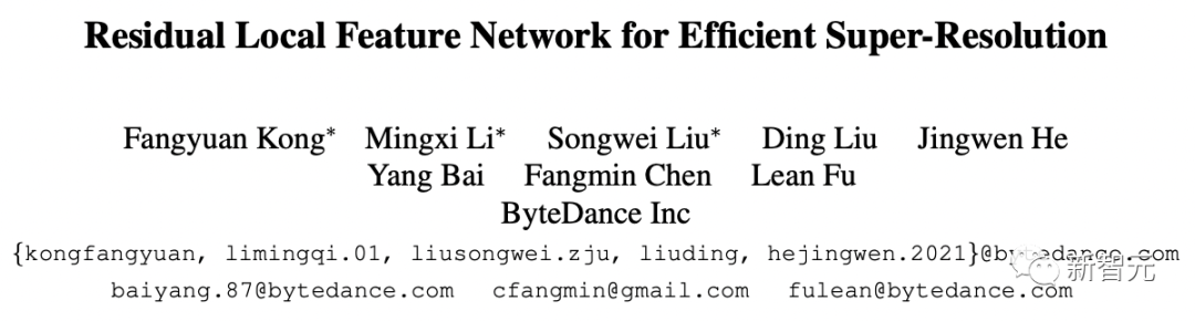 重新思考 RFDN 的网络设计并研究其速度瓶颈,提出一个更加高效的网络结构 Residual Local Feature Network(RLFN);