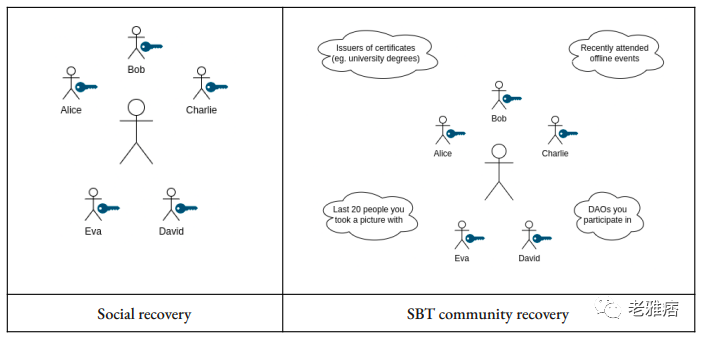 V神提议在社区范围内采用社会恢复模式来防止SBT盗贼。通过社会恢复,用户可以指定一组个人或机构作为 "监护人",如果他们的钱包遭到破坏,他们有能力访问和改变其私钥。然而,如果他们指定的监护人去世或他们的关系破裂,个人将很难恢复被盗的SBT。