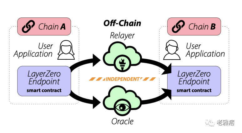 LayerZero是一种全链的互操作性协议-有纯正的互操作性。LayerZero 构建了一种与市面上现有的跨链协议完全不同的“超轻节点”模式,致力于探索提供一种安全可靠的跨链协议,从根本上解决目前跨链协议的两大难题,成本高和中心化较为严重。比如像PolyNetwork这种跨链桥,它通过部署跨链协议,往往通过智能合约和多签来执行,如果你用过,那么你就知道,你需要在两边先有gas,一边执行转出,另一边再执行收取,他的资产是由多签托管节点来承担的,需要声誉较好的机构如交易所等来参与处理。在两个要跨的链上分别部署节点,如Near的彩虹桥,在以太坊部署Near轻节点,在Near上部署以太坊轻节点,验证双方交易,又如Cosmos的IBC,在链上运行一个完整的轻节点,也是类似的方法。