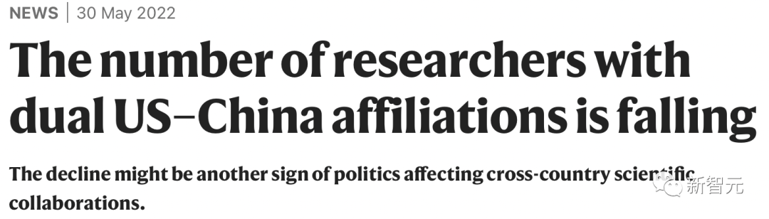 在过去的3年里,各类论文的作者中,表明自己与中国和美国有从属关系的人数下降了20%以上。