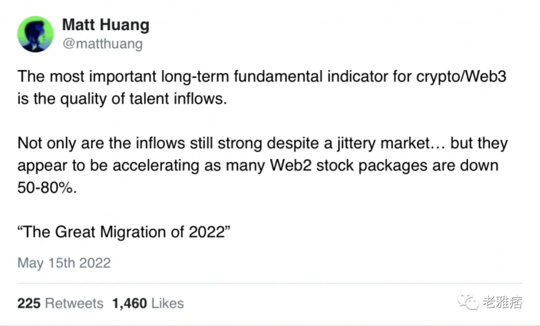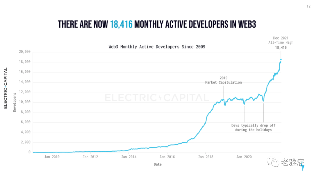 开发人员是加密货币生态系统最重要的参与者,他们的增长与正在创建、维护和更新的创新协议相关,推动了增长的飞轮。在过去的六个多月里,一个稍微令人惊讶的事态发展是FAANG开发人员大量涌入加密货币生态系统。虽然随着价格下跌,开发者迁移的步伐可能会放缓,但这一趋势已经确立、明确并不断巩固。