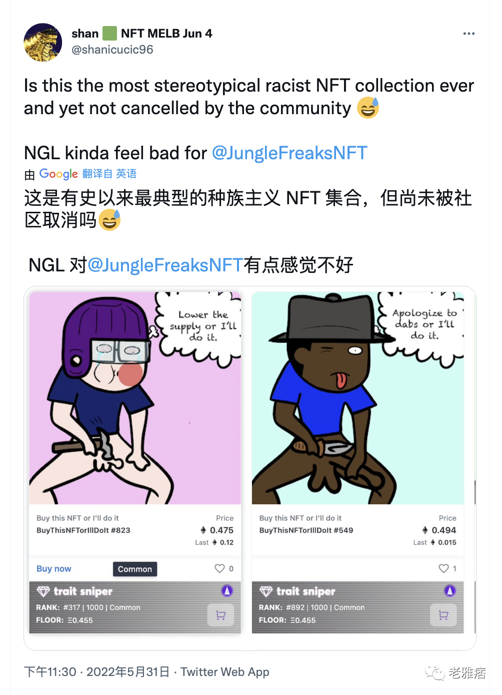 毫无疑问,这种形式是NFT领域以外的大多数互联网用户在想到NFT时想到的。这是设计好的--在推特上快速搜索 "NFT",你会看到大量用户的推文,其头像包括无聊猿、CryptoPunks,、Cool Cats,、Doodles,以及它们所有的分支和衍生品。