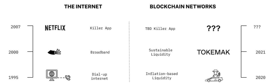 当交换变得更加普遍(对经济更加重要),流动性也变得更加重要。一个有用的类比是,带宽用于互联网时代,流动性用于区块链时代。带宽是数据在网络上流动的速度,而流动性是你可以用你的资产交换其他东西的容易度。拥有充足的带宽和流动性将使得DAO经济可以蓬勃发展。