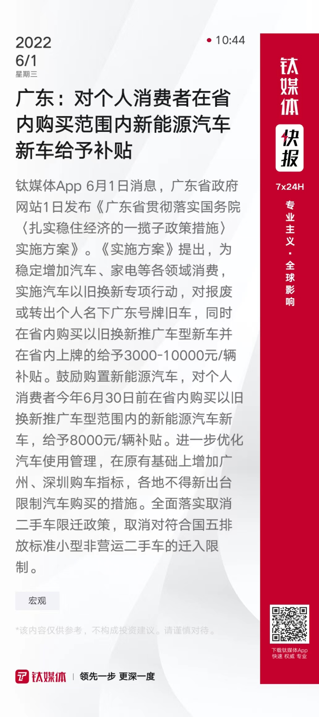 广东:对个人消费者在省内购买范围内新能源汽车新车给予补贴