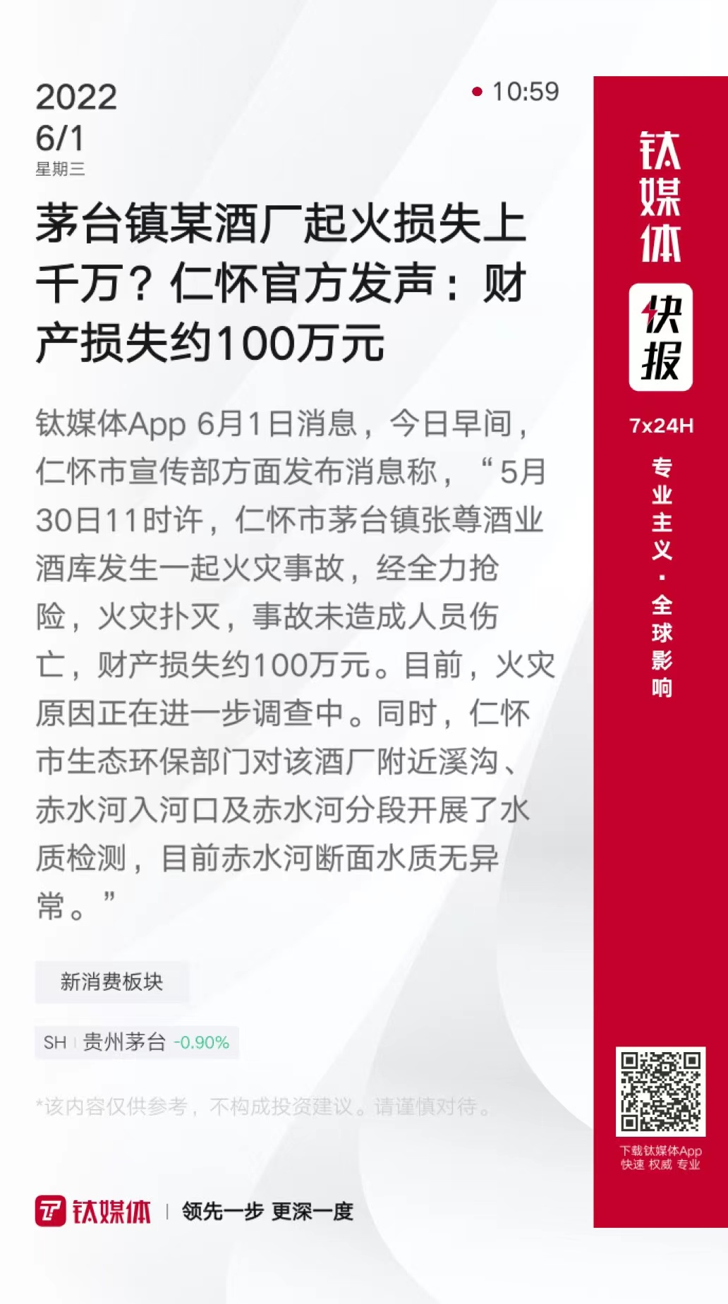 茅台镇某酒厂起火损失上千万?仁怀官方发声:财产损失约100万元