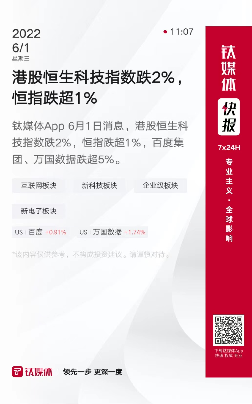 港股午评:港股行情波动下探,恒生科技指数跌1.72%