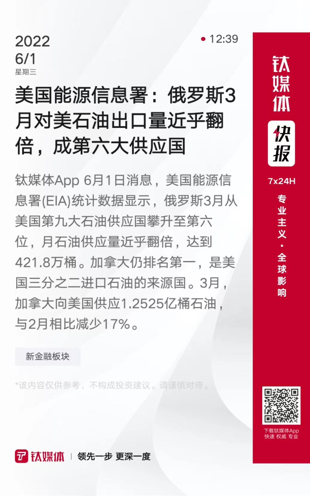 美国能源信息署:俄罗斯3月对美石油出口量近乎翻倍,成第六大供应国