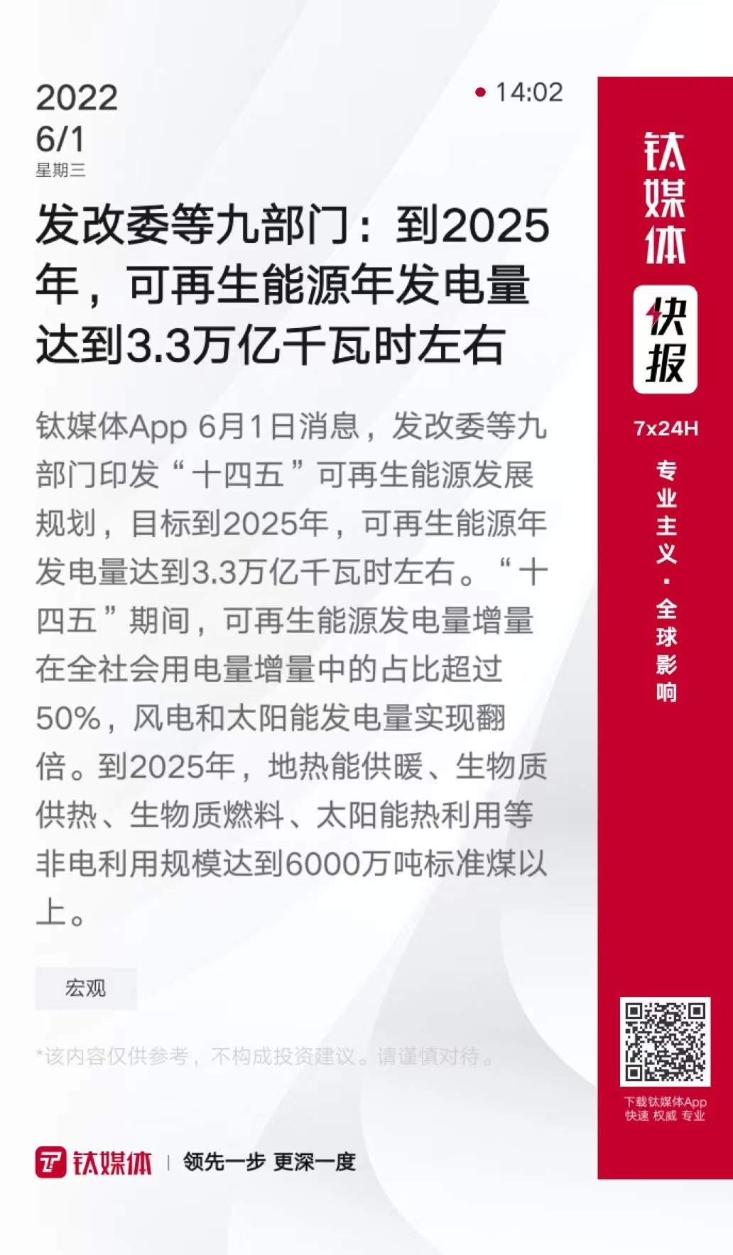 发改委等九部门:到2025年,可再生能源年发电量达到3.3万亿千瓦时左右