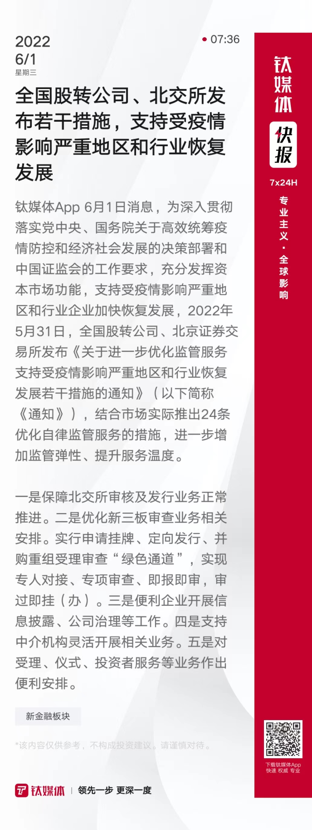 全国股转公司、北交所发布若干措施,支持受疫情影响严重地区和行业恢复发展