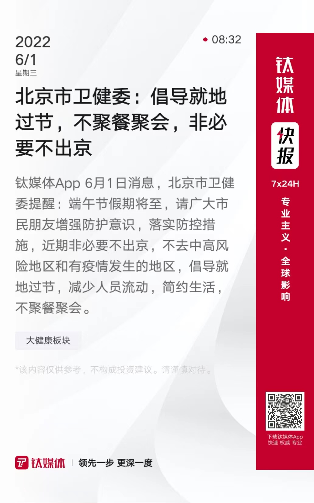 北京市卫健委:倡导就地过节,不聚餐聚会,非必要不出京