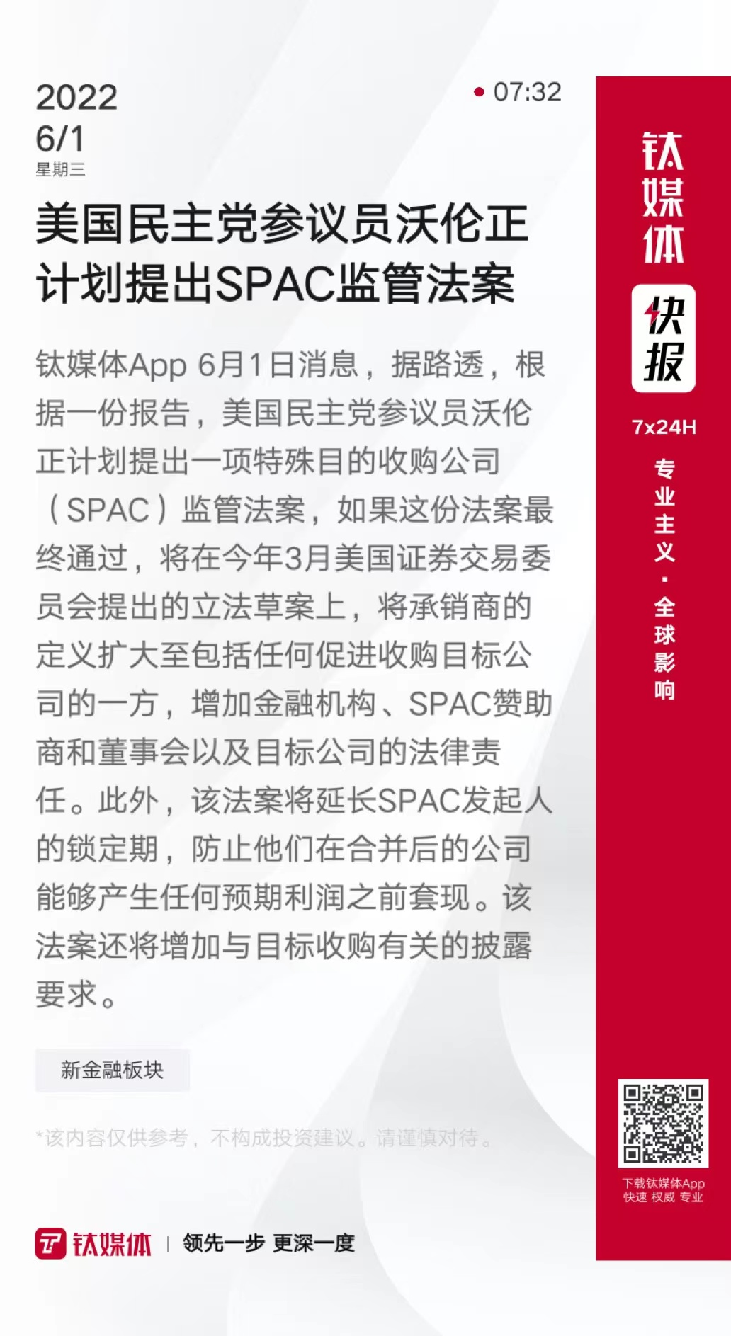 美国民主党参议员沃伦正计划提出SPAC监管法案