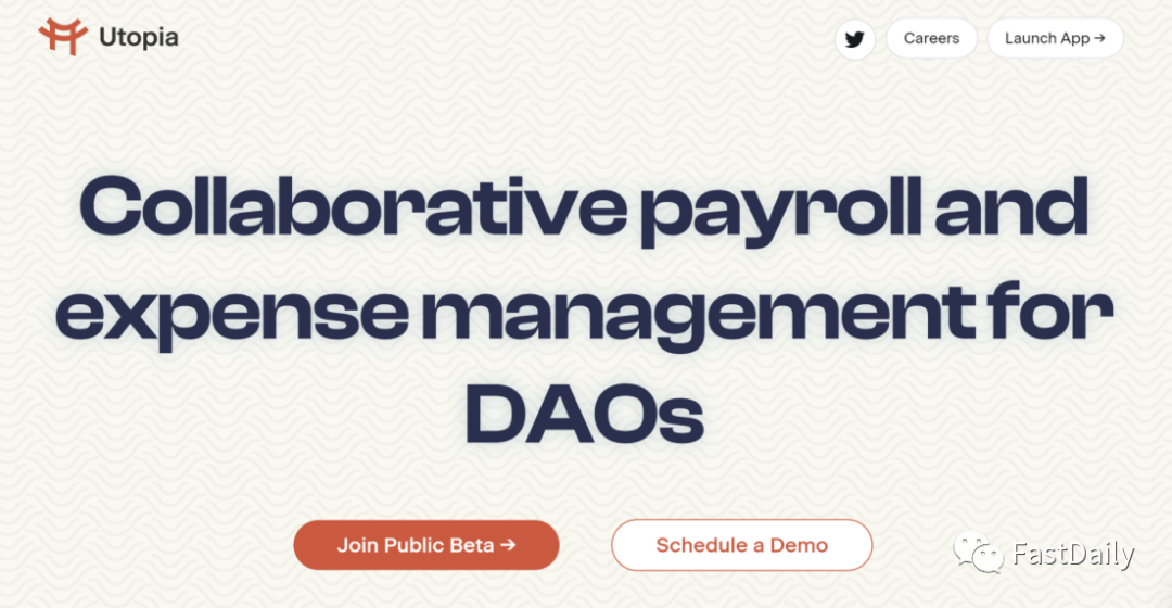 2022年6月1日,DAO薪酬支付系统Utopia以1.15亿美元的估值完成了一笔数额为2300万美元的A轮融资。该轮融资由Paradigm领投,Kindred Ventures、Circle Ventures、Gusto、Coinbase Ventures、Infinity Ventures Crypto、Distributed Global和Fourth Revolution Capital等参投。据悉,这笔新资金将用于发展和扩充团队,并进一步完善DAO的功能,包括Token归属、账本设计与人员管理等事项。