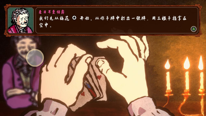 这让玩家可以在作为荷官洗牌发牌时,总能为伯爵先生发到大牌,从而操控整个牌局。游戏中有许多种类型的赌博,但几乎每一种赌局都是以扑克为载体,此时玩家便可以在各种牌局中自由发挥,时而化身侍从倒酒偷窥,时而作为荷官魔术手发牌。玩家将用过人的记忆力与神乎其神的手法,在众目睽睽之下完成偷天换日。